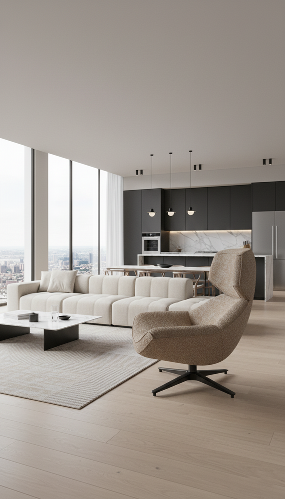 • 1x Sessel (ohne Dekoration und weiter gezeigte Möbel)