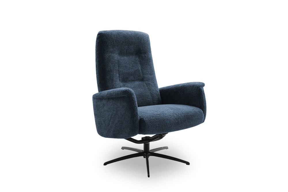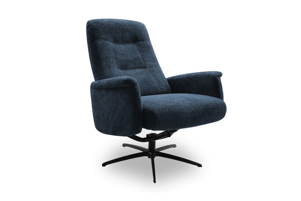 Sessel Wyatt mit Drehfuß aus Stahl Kuschelbezug Blau Drehsessel