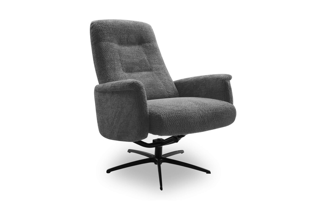 Bei diesem Sessel steht die Langlebigkeit ganz klar im Vordergrund. Der verwendete Stoff ist flauschig, angenehm weich und mit seinen über 100.000 Scheuertouren sehr robust. Der Sessel-Rahmen besteht aus Stahl, ebenso der Drehfuß. Dieser ist schwarz pulverbeschichtet und lässt sich um 360° drehen. Der Sessel ist aber nicht nur zum Aufrecht-Sitzen gedacht. Durch die Verlagerung des eigenen Körpergewichts kann die Neigung im Rücken verändert werden, zeitgleich verschiebt sich der Sitz nach vorn, sodass eine besonders gemütliche Relax-Position eingenommen werden kann. Fazit: Durch und durch ein bequemer, robuster und optisch ansprechender Sessel, der wenig Platz im Raum einnimmt.