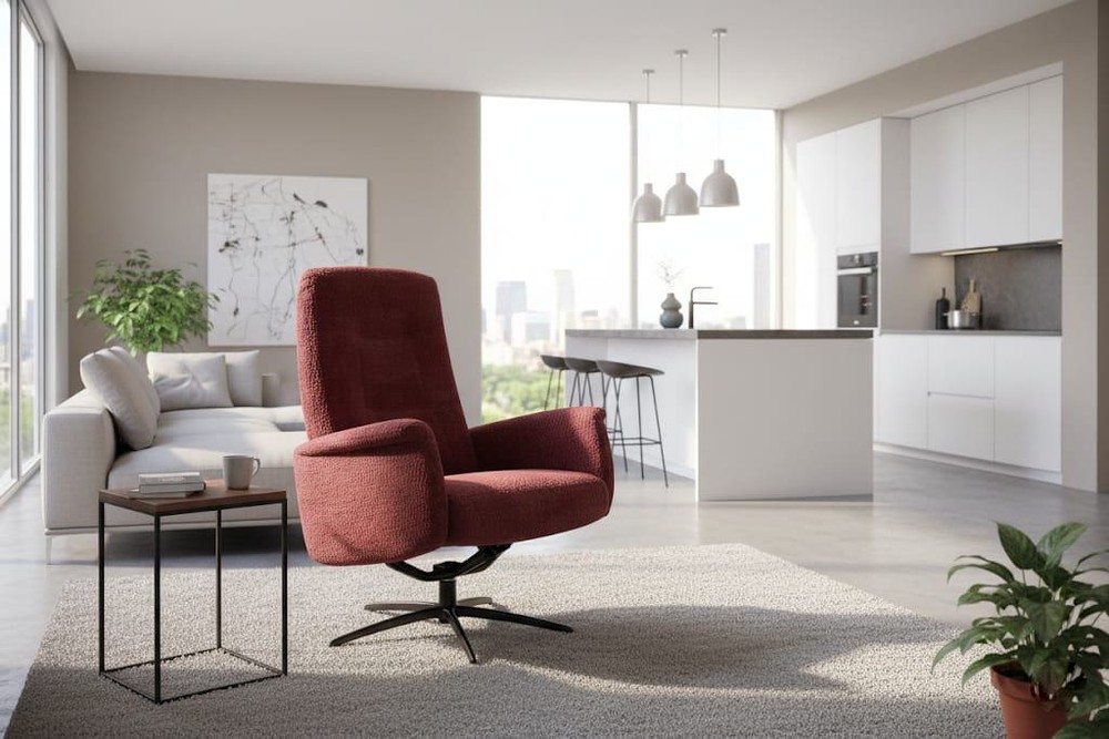 Sessel Wyatt mit Drehfuß aus Stahl Kuschelbezug Rot Drehsessel