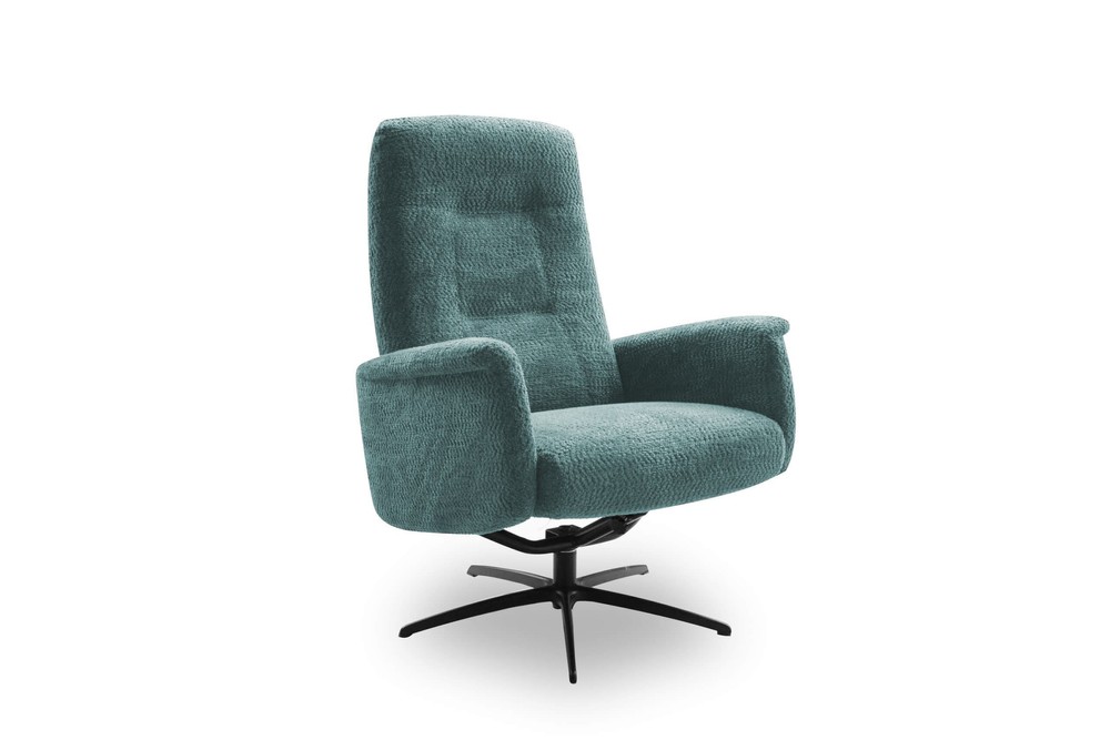 Sessel Wyatt mit Drehfuß aus Stahl Kuschelbezug Türkis Drehsessel