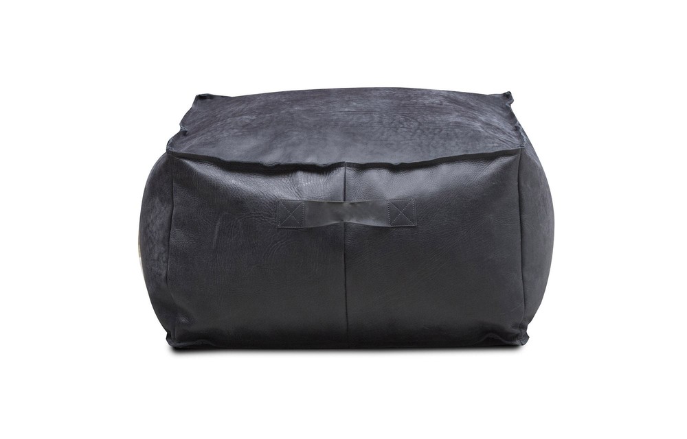Sitzsack Hocker Pablo aus dickem Leder Dunkelbau 70x70x33 cm