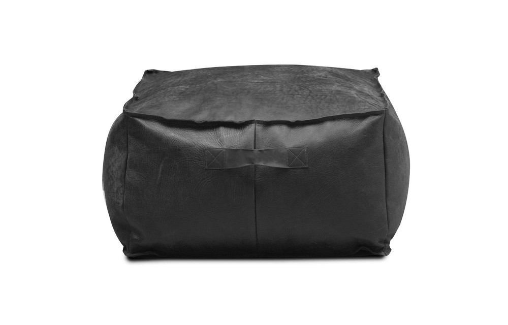 Sitzsack Hocker Pablo aus dickem Leder Schwarz 70x70x33 cm