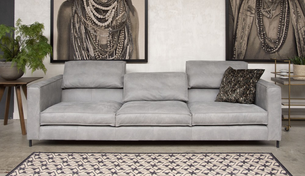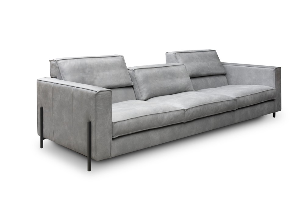 Sofa Calzone 4-Sitzer mit Stahlfuß Leder Grau 254x96x68 cm