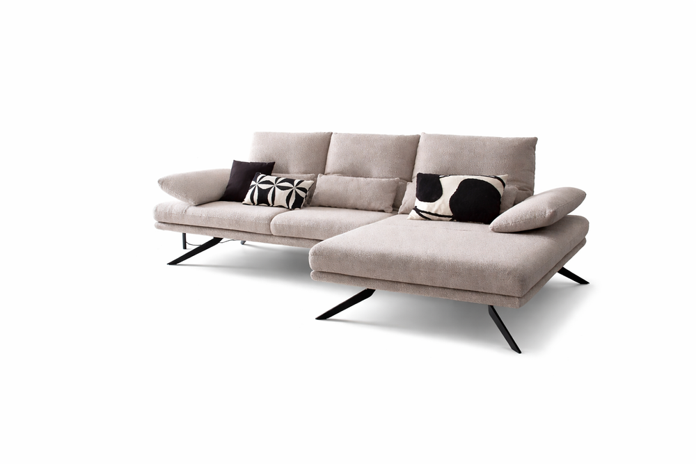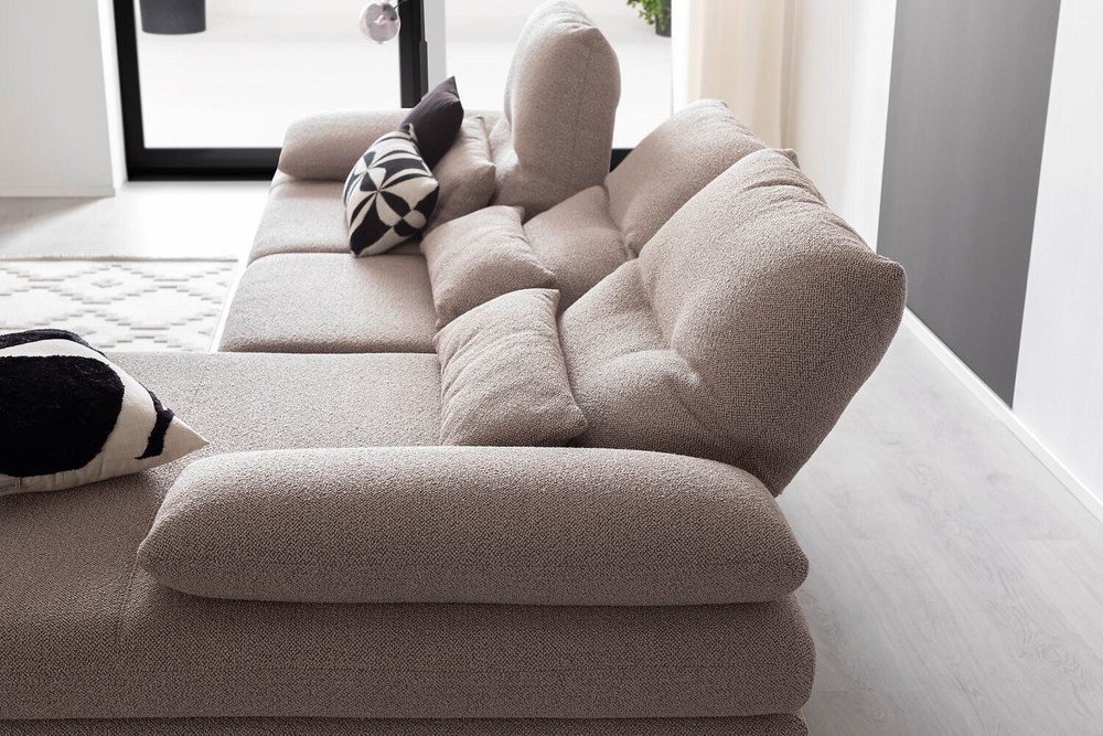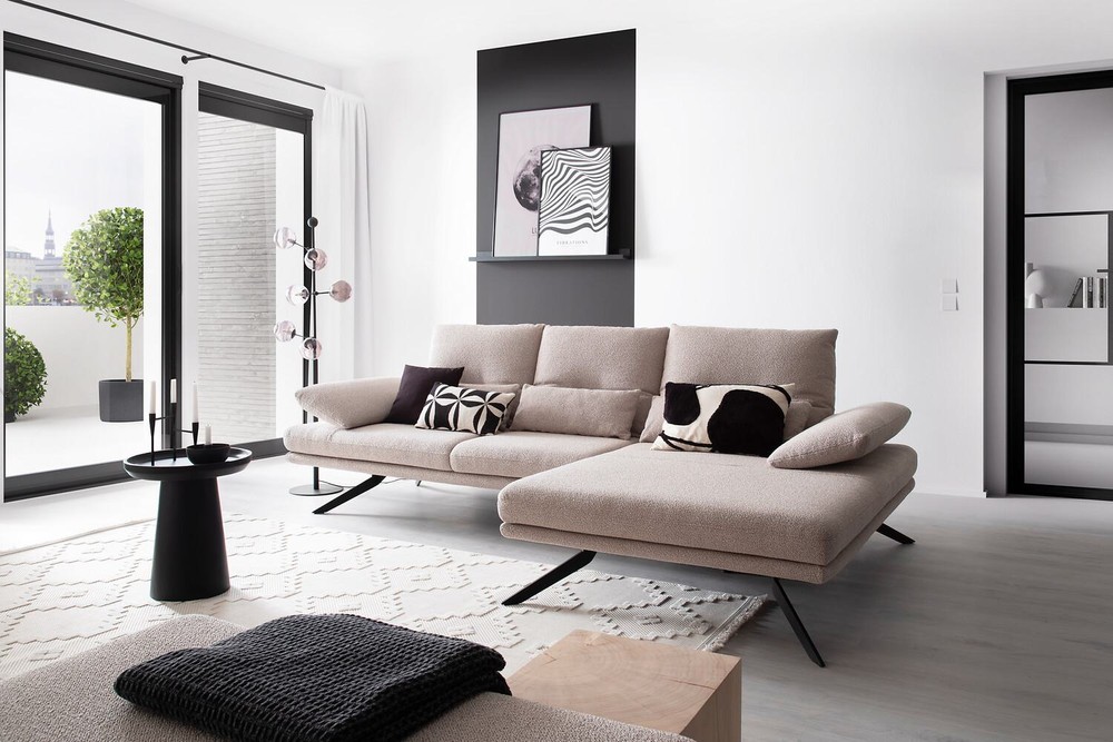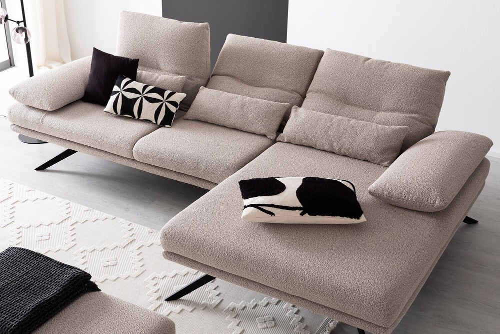 Das Trendsofa Florida vereint zeitloses Design mit höchstem Sitzkomfort. Die großzügige L-Sofa bietet ausreichend Platz zum Entspannen, während der edle Bouclé-Stoff für ein gemütliches Ambiente sorgt. Die klaren Linien und das dezente Farbkonzept fügen sich harmonisch in moderne Wohnräume ein.