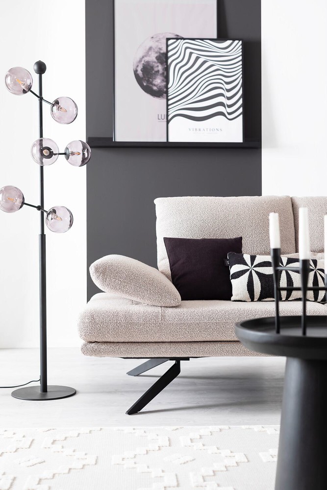 Die hochwertigen Stahlfüße verleihen dem Sofa eine schwebende Leichtigkeit und unterstreichen das elegante Design.