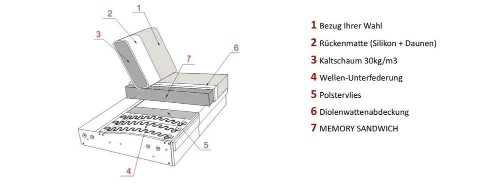 • Sitzkomfort: Menory-Sandwich mit HR-Schaum 30kg/m³