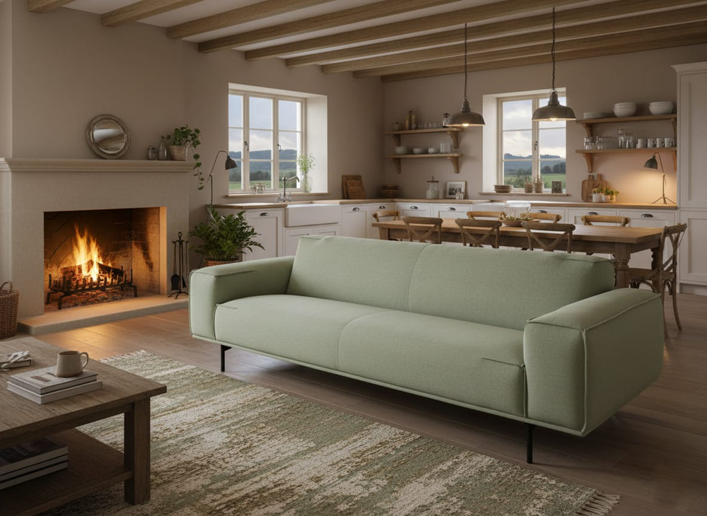 Sofa im organischen Stil - Hochwertiger Stoff in Leinen-Optik