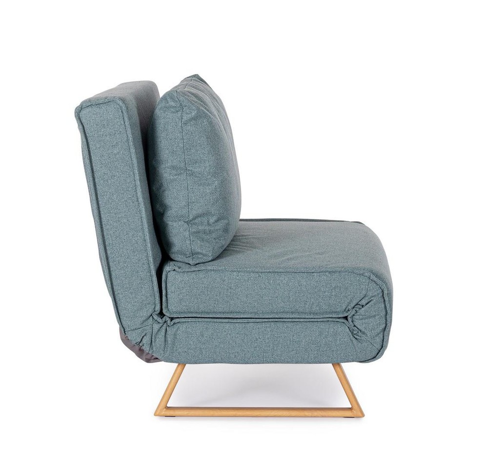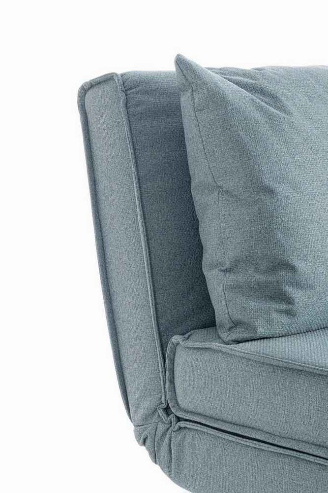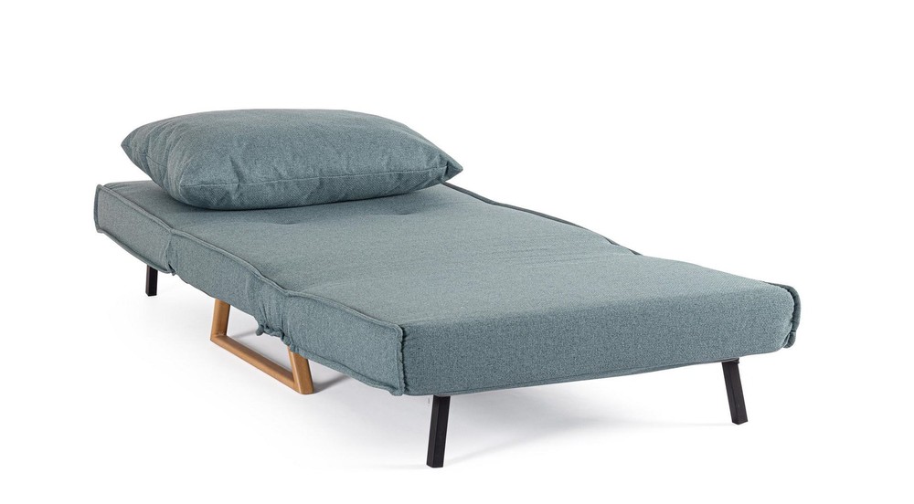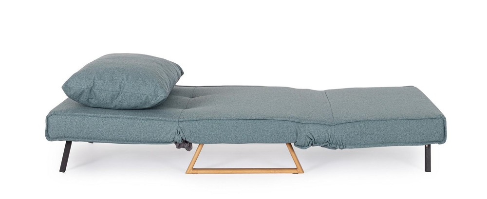Dieses vielseitige Sofabett verbindet modernes Design mit praktischer Funktionalität und sorgt sowohl im Wohn- als auch im Gästebereich für stilvollen Komfort. Mit seinem kompakten Format, dem weichen Polster und der clever integrierten Schlaffunktion ist es die perfekte Lösung für alle, die wenig Platz haben, aber nicht auf Qualität, Komfort und Design verzichten möchten. Die Konstruktion basiert auf einem stabilen Gestell aus Stahl und Spanplatte – eine Kombination, die für Langlebigkeit, Tragkraft und strukturelle Stabilität sorgt. Die klaren Linien und das zeitlose Design machen das Sofabett zu einem flexiblen Möbelstück, das sich mühelos in moderne wie klassische Einrichtungsstile integrieren lässt. Die Beine aus Stahl sind mit einem Holzoptik-Finish versehen und bilden einen warmen, natürlichen Kontrast zum ansonsten cleanen Look des Sofabetts. Sie sorgen nicht nur für einen sicheren Stand, sondern verleihen dem Möbelstück auch einen stilvollen, wohnlichen Charakter. Besonders komfortabel wird das Sofabett durch die Polsterung aus Polyurethanschaum – ein Material, das für seine Formbeständigkeit und angenehme Stützkraft bekannt ist. Der weiche Bezug aus strapazierfähigem Polyester in einem eleganten Blauton rundet das Gesamtbild harmonisch ab. Er ist pflegeleicht, langlebig und verleiht dem Sofabett eine moderne, frische Ausstrahlung. Ein weiteres durchdachtes Detail: Sowohl das Sitzkissen als auch die losen Rückenkissen sind abziehbar – praktisch für die Reinigung und Pflege im Alltag. Mit nur wenigen Handgriffen lässt sich das Sofa in eine Liegefläche mit einer Größe von ca. 90 x 190 cm verwandeln – ideal für Übernachtungsgäste oder als gemütliche Ruhezone zum Lesen, Entspannen oder Fernsehen.